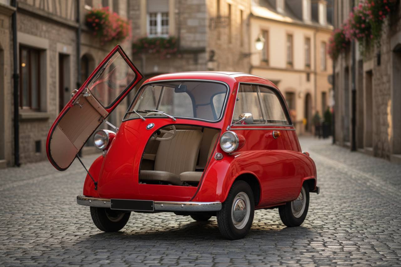 La BMW Isetta, icona delle microcar, stupisce con la sua porta frontale unica. Scopri come questo design geniale ha rivoluzionato parcheggio e mobilità urbana.